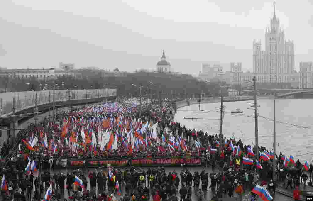Москваялда марш байбихьилалде цебе аза-азар чияс тIугьдул лъуна Кремлалда аскIоб Немцов чIвараб бакIалда ва маршалда киназго абухъе рорхун рукIана гьесул суратал.