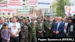 Гьеб митингIуцIараз акциялде ахIун рукIун руго Буйнакскалъул нухмалъиги, амма гьезул цониги вакил гIахьаллъичIо гьеб тадбиралда. «Эркенлъи» радиоялъе шагьаралъул администрациялъул гIадамал къабул гьарулеб бутIаялда лъазабуна мэр гьаб сагIат хIухьбахъиялда вугила, нужер суалазе жаваб кьезе регIарав чи гьанивги гьечIилан.