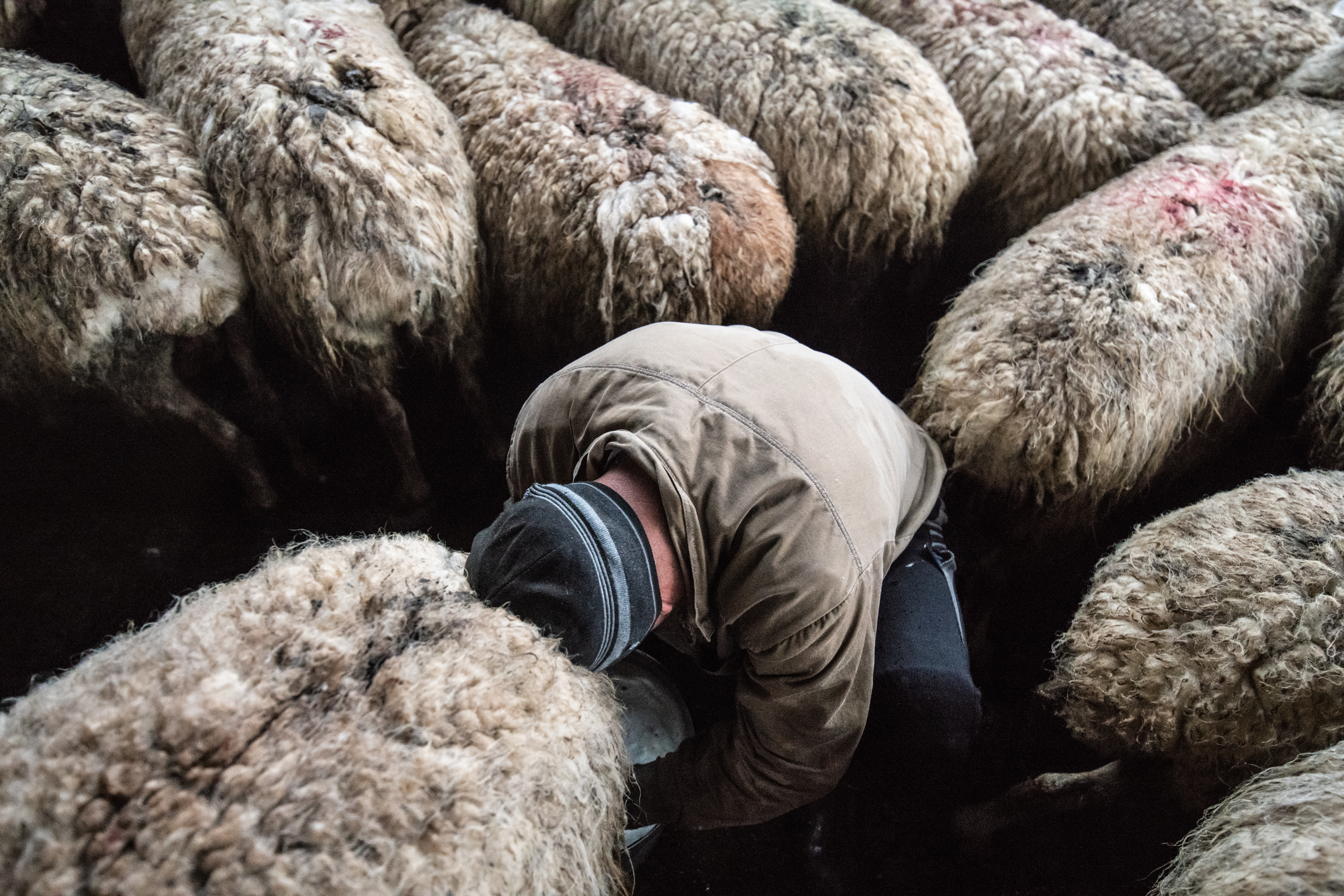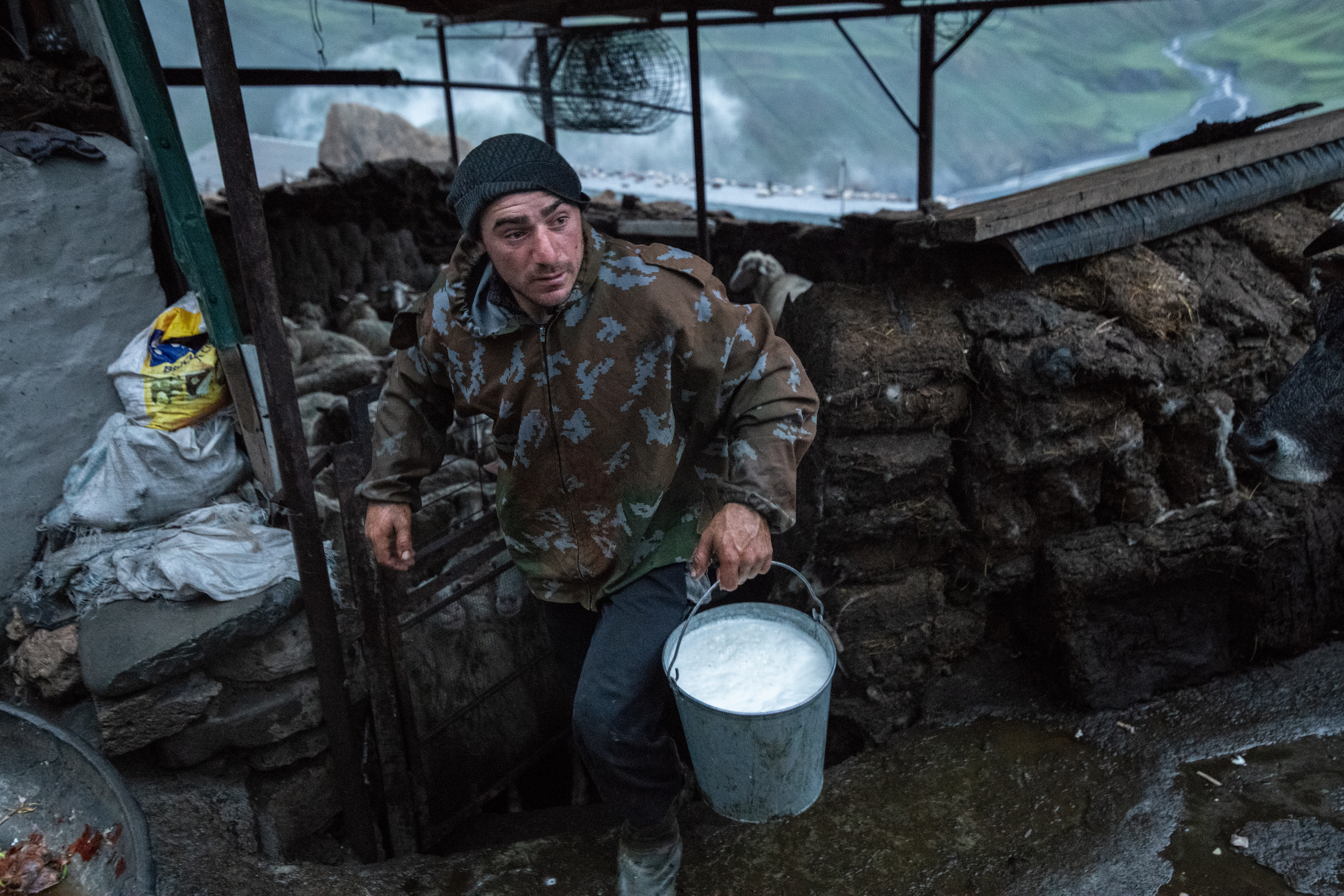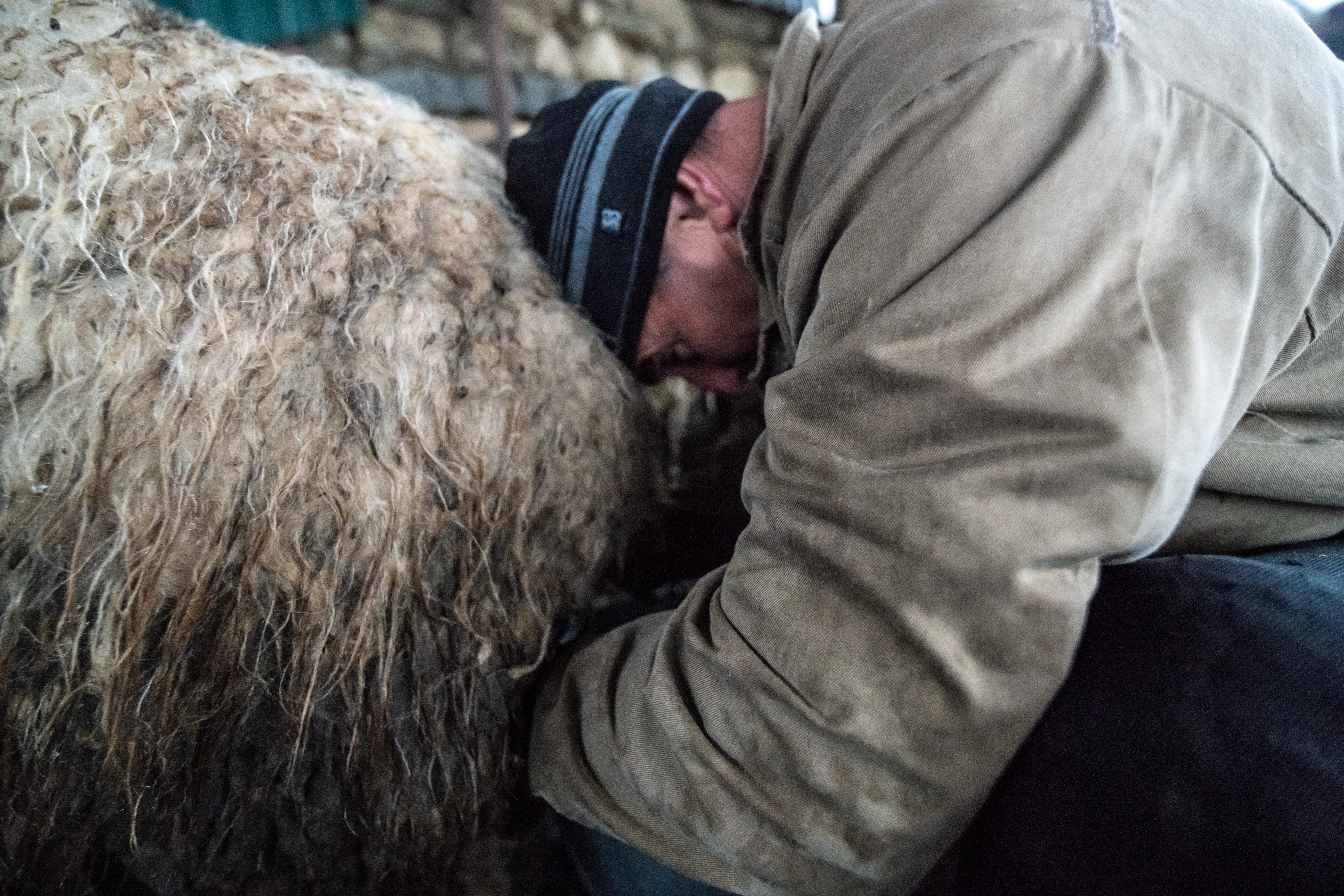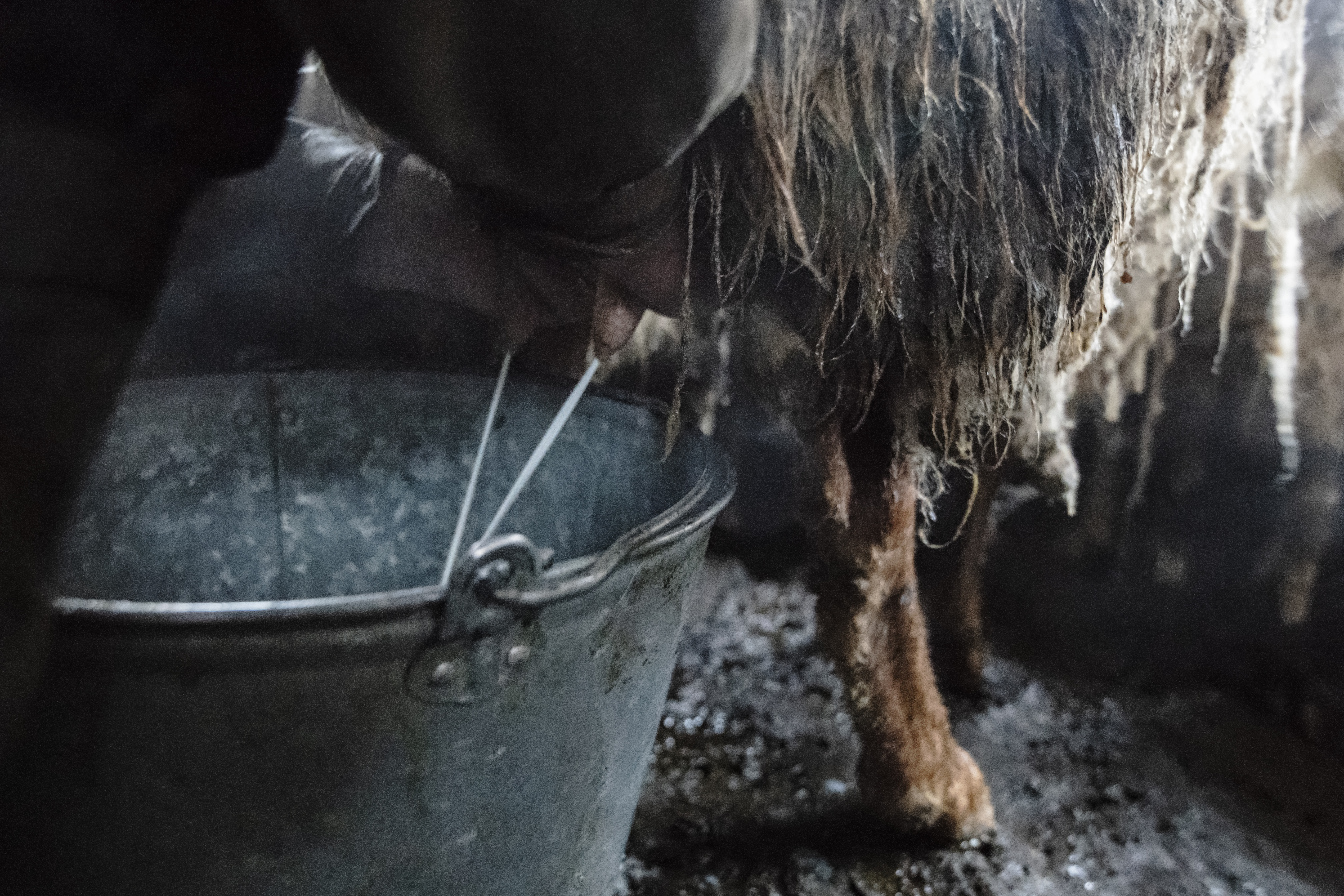 Отработанным движением горец хватает очередную овцу за ногу, притягивает к себе и доит, уткнувшись в шерстяной зад. Другие овцы смотрят на это с неподдельной грустью во взоре.