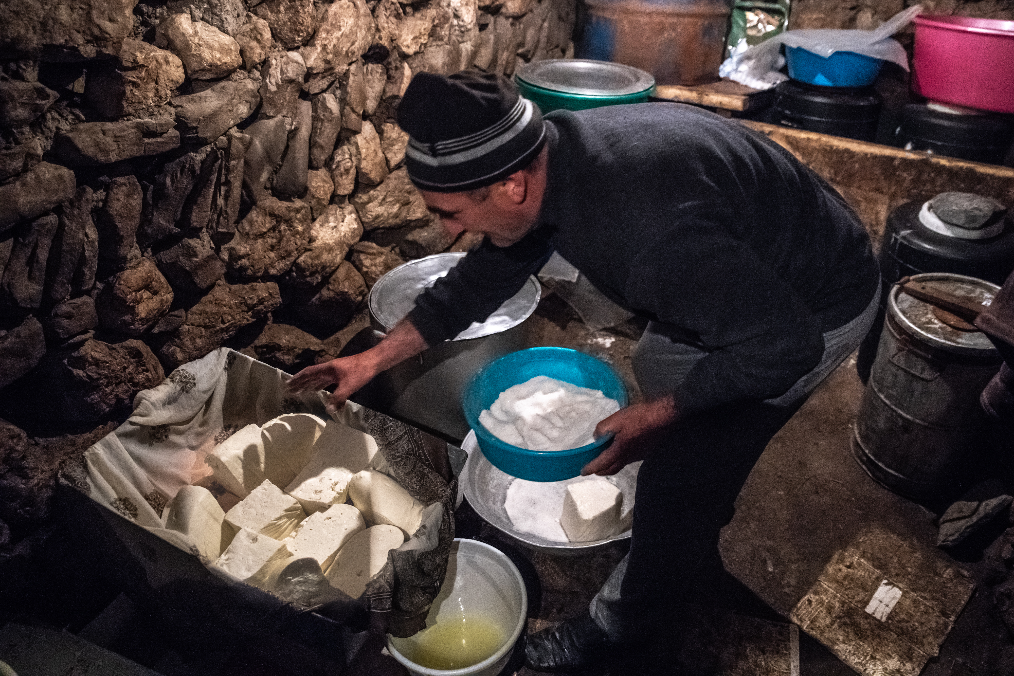 В собранное молоко кладут закваску, и вскоре оно сворачивается. Тогда будущий сыр перекладывают в особую емкость со стоком для жидкости. Наутро молодой сыр готов. Осталось лишь обвалять его в соли, и можно продавать.