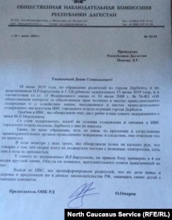 Глава общественной наблюдательной комиссии Дагестана Омар Омаров направил прокурору республики обращение по поводу жителей Дербента Ислама Барзукаева, Мизарали Мизаралиева и Гасана Курбанова, содержащихся в данное время в городском ИВС. Молодым людям предъявлены обвинения по ст. УК РФ 222 (незаконный оборот оружия).