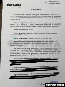 В правительство Ингушетии подана заявка о проведении в республике многодневного митинга с 26 июля по 1 августа. Цель митинга, сообщает Telegram-канал ФортангаORG со ссылкой на организаторов, добиться "освобождения незаконно арестованных участников митинга в Магасе 26-27 марта, прекращение репрессий и уголовного преследования в отношении гражданских активистов республики Ингушетия".