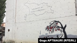 Пожилой мужчина и девочка стоят у ограждения из колючей проволоки. По центру этого ограждения, вытеснив искусственный барьер, растет дерево, с веток которого свисают красные яблоки. Этот рисунок появился в Гори на стене со "шрамами" – следами удара кассетной бомбы. Его автор – уличный художник Георгий Гагошидзе, более известный как Гагоша.