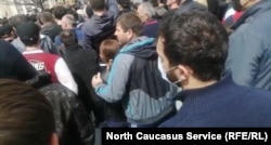 С утра к главной площади Владикавказа – площади Свободы, на которой идет масштабная реконструкция, – пытались подойти люди, однако проезд и проход туда были закрыты, поэтому участники митинга стали собираться в нескольких кварталах от нее. Там же начались первые задержания.