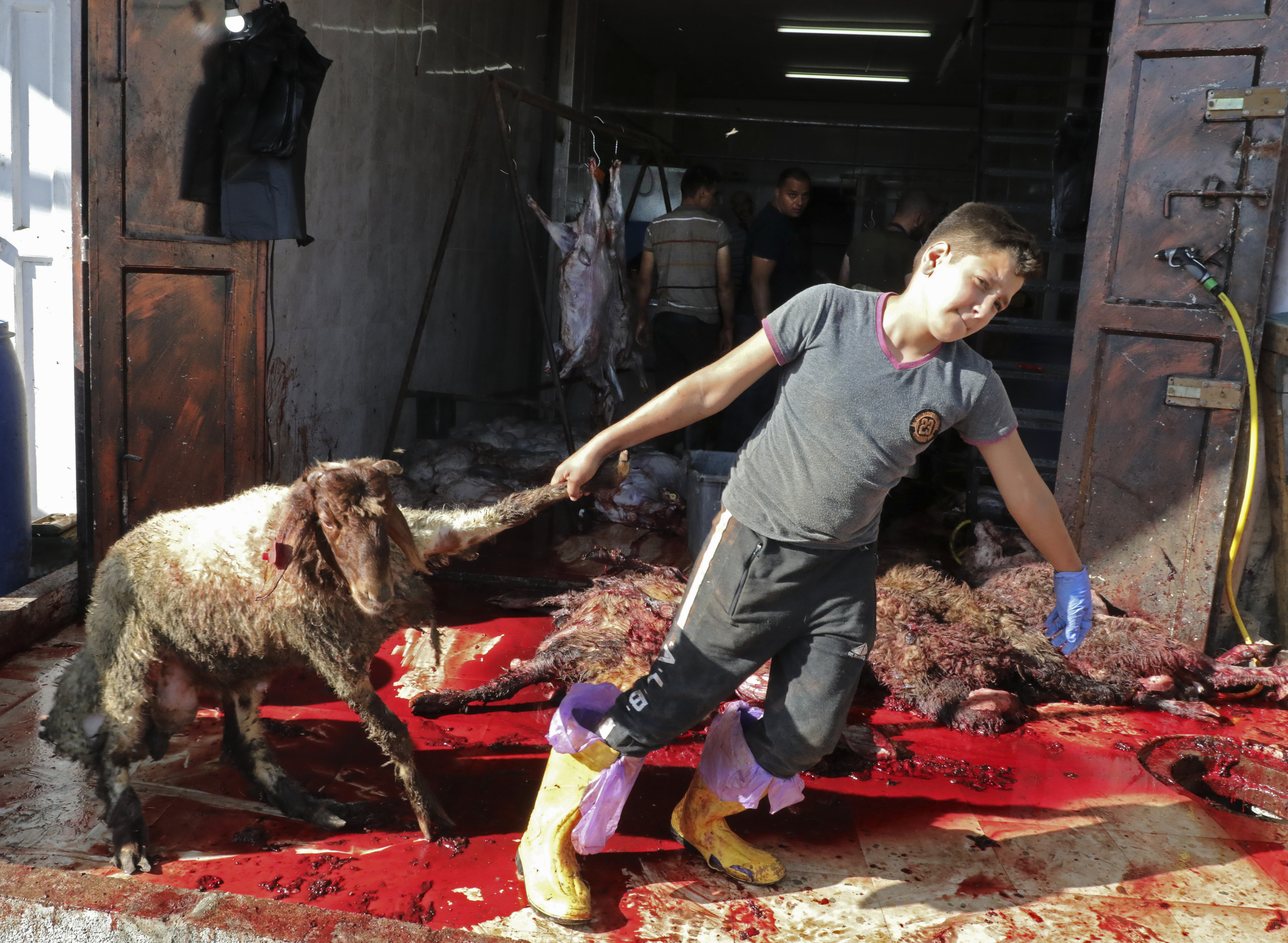 Мальчик ведет барашка на заклание.
