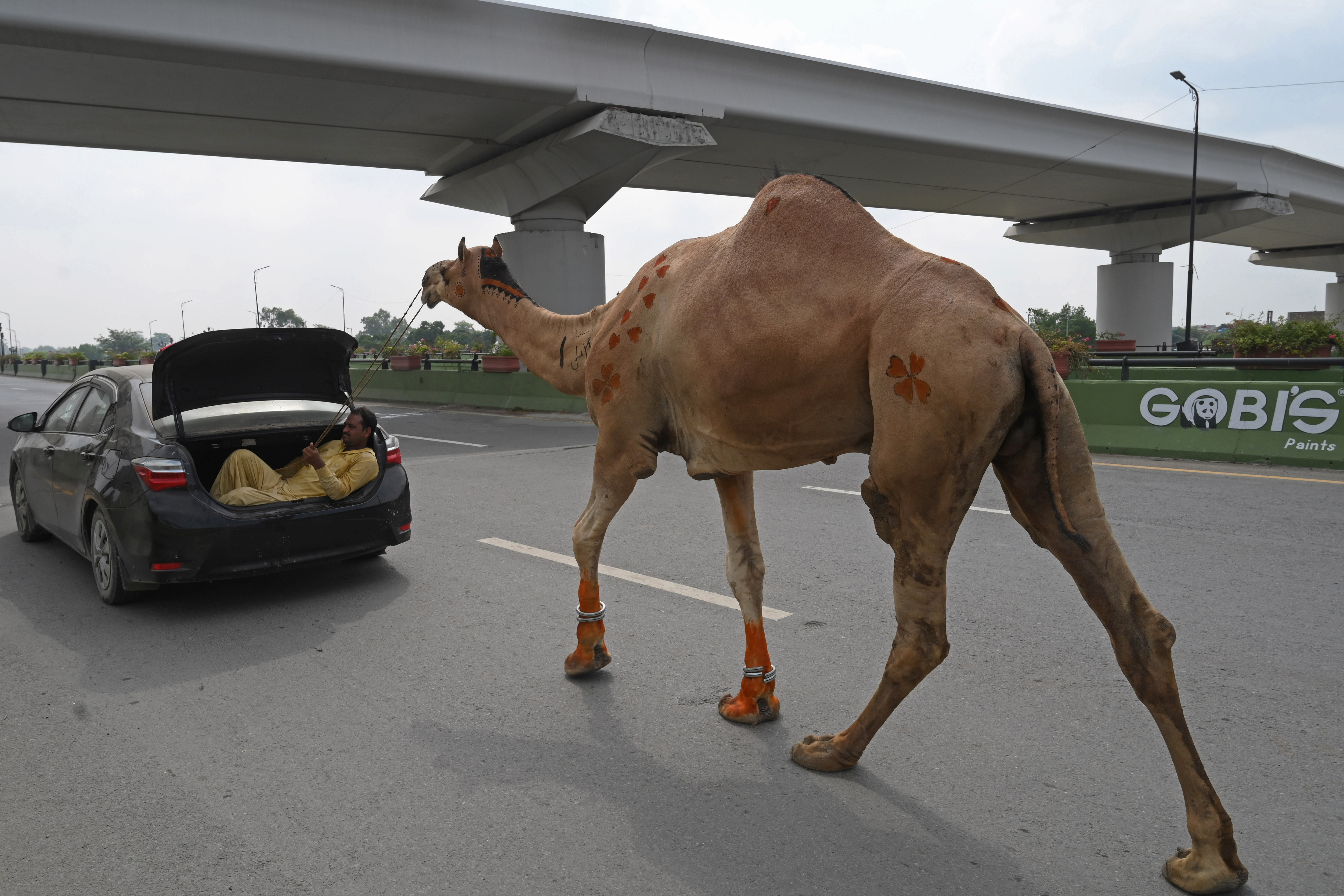 Верблюда вести не так просто. Этот мужчина в Лахоре, Пакистан, воспользовался автомобилем.