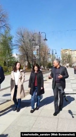 Фрагмент видеотрансляции прогулки Вячеслава Володина по Саратову