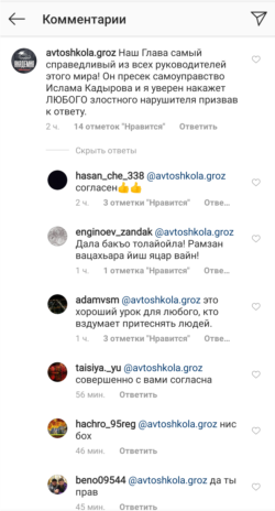 У просматривающего комментарии под постами может создаться впечатление, что почти каждый человек солидарен с чеченским руководством, поскольку позиция подавляющей части комментирующих удивительным образом совпадает с позицией региональных властей.