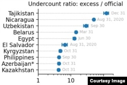 "Примеры есть самые разные. Перу очень пострадала от коронавируса, но недоучет ковидных смертей там практически отсутствует. Однако все страны, которые у нас лидируют в графике недоучета, Таджикистан, Никарагуа, Узбекистан, Беларусь, Египет – это страны, где мы по определению видим большую избыточную смертность, они сильно пострадали. Но я не уверен, что есть корреляция в общемировом масштабе. Видимо, в разных местах Земли действуют слишком разные факторы, которые заставляют страны недоучитывать смертность от ковида".