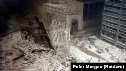 Люди призывали на помощь из горящей Северной башни Всемирного торгового центра. Всего там погибло 1366 человек, находившихся на верхних этажах Северной башни ВТЦ. Большинство погибли в момент столкновения самолета с башней, остальные – из-за пожара и обрушения здания.