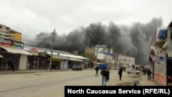 Напомним, сегодня в 13.15 пожар на рынке по улице Ирчи Казака в Махачкале был полностью ликвидирован. За почти четыре часа, сколько продолжался пожар, рынок практически полностью сгорел.