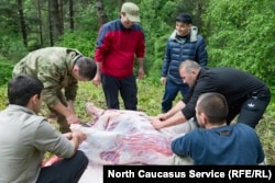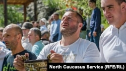 На соседнем холме полощется красное знамя святилища. С одной стороны – крест, с другой – дракон. Рядом – беседка со столом и резными стульями. Здесь заседают хистары – трое старейшин. На столе – голова и шея жертвенного быка. Коротко стриженный старик в коричневой осетинской рубахе с веревочными узлами вместо пуговиц поднимает глиняную чашу с пивом. Первый тост, по традиции, за Великого Творца. Сотни паломников замерли. Оратор протягивает чашу мальчику. Тот послушно делает глоток и заедает его пирогом из рук старейшины. Тут же десятки ножей вонзаются в тесто, сотни стаканов опрокидываются в глотки. Начинается кувд. Второй тост хистар поднимает за Уастырджи, третий – за причину, по которой здесь все собрались, как собираются уже много лет в назначенную июньскую субботу. За Реком.