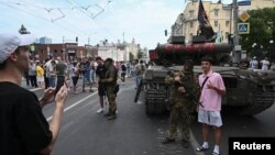 ФСБ России возбудила против Пригожина уголовное дело по статье об организации вооруженного мятежа, а президент Владимир Путин назвал его поступок предательством, изменой и ударом по России. К утру наемники ЧВК на танках оцепили штаб ЮВО, где находится командный пункт управления вторжением в Украину, а также здания МВД, ФСБ, городскую администрацию и региональное правительство. На улице города практически не было сотрудники полиции, а служащим следственных органов рекомендовали не появляться на рабочих местах "как минимум до рассвета". Спрос на билеты на поезда и автобусы из города резко вырос, а крупные продуктовые магазины ввели ограничение на продажу значимых товаров.